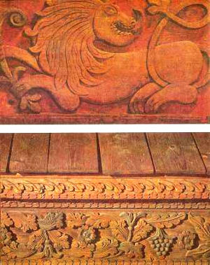 Характер резьбы по дереву в XVI в. изменился. «Рельеф резьбы XVI в. более высокий, объемный, сочный и живописный по сравнению с некоторой графичностью плоского, в один план рельефа XIV и XV вв.» (Двойникова Е. С., Л ямин И. В. «Художественные работы по дереву» М., 1972, с. 23)
