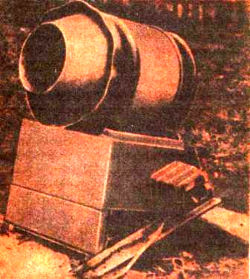 Горловина (входное отверстие) смесительного барабана изготовлена такого диаметра, при котором можно было загрузку барабана производить при помощи совка шириной 17 см. Если такую мешалку может обслуживать более опытный работник, было бы лучше увеличить размеры входного отверстия барабана, чтобы загрузку его можно было производить при помощи обычной лопаты. Можно было бы применить простой способ реверсирования хода двигателя для облегчения выгрузки содержимого смесительного барабана, в котором лопасти приварены под небольшим углом, однако применение этого способа оказалось излишним. Так как построить такую мешалку может лишь тот, кто не только обладает профессиональным навыком, но и способен выполнять сварочные и слесарные работы, уверены, он сможет переделать и указанную конструкцию в зависимости от его возможностей.